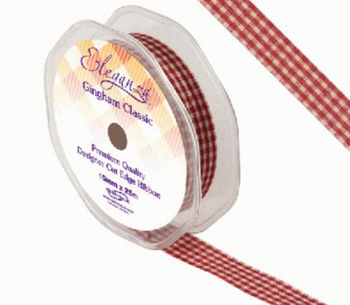 Ribbon - Eleganza Gingham Red Ribbon -No. 16 - 15mm
