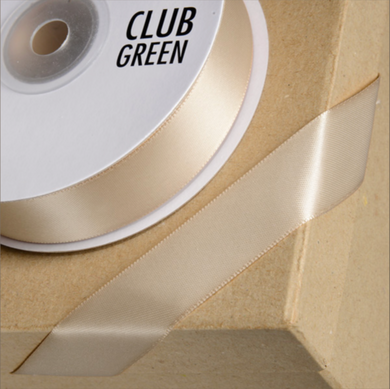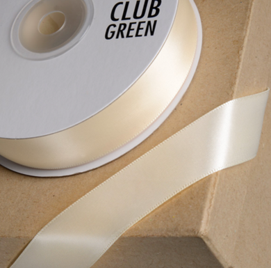 Ribbon - Double Sided Satin Ribbon Club Green 15mm Cream - SOLD PER METRE
