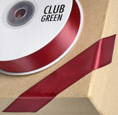 Ribbon - Double Sided Satin Ribbon Club Green 15mm Dark Burgundy - SOLD PER METRE