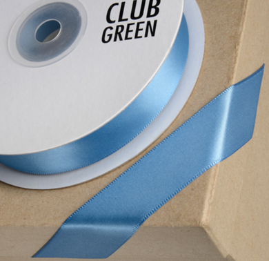 Ribbon - Double Sided Satin Ribbon Club Green 15mm Wedgewood Blue - SOLD PER METRE