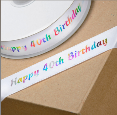 Ribbon - 40th Birthday Multi-coloured Ribbon 20mm