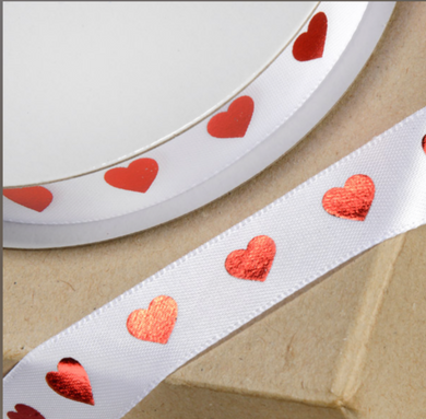 Ribbon - Red Hearts on White Ribbon - 15mm